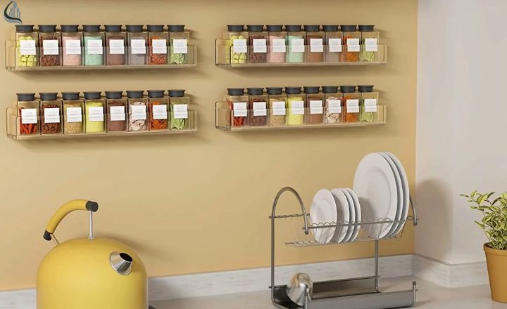 - Over Counter Space: If your kitchen has empty wall space above counters, that’s prime real estate for storing spices.